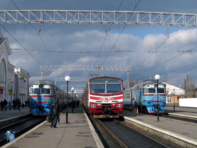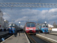 Ж/д ст. "Полтава - Южная" Он же просто Южный вокзал. Находится в восточной части города на пл. Славы. Является конечной остановкой троллейбусных маршрутов №№1, 2, 4, 6, 9, 11 а также большого количества автобусных маршрутов. основной железнодорожный вокзал Полтавы. На фото: 1. Вид со стороны пл. Славы. 2. Вид со стороны путей. Фото в день открытия электрификации, 21.08.08. 3. Электро- и дизельпоезда на станции. |