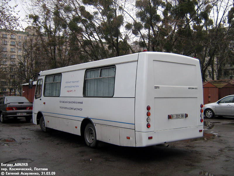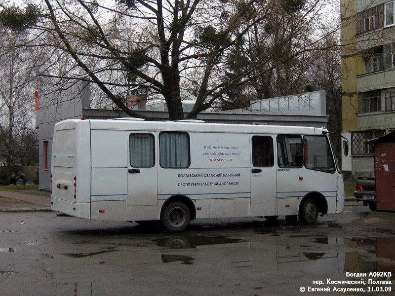Второй автобус специализирвоанного назначения - на базе "Богдан А092", получивший название "Богдан А092КВ". Назначение: передвижной рентгенофлюоро-графический кабинет. |