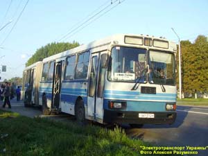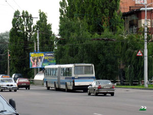 Преимущественным маршрутом работы этого автобуса являлся "Полтава-Судиивка". Но даже автобус- гармошка тогда с трудом справлялся с большим пассажиропотоком на данном маршруте. Фото предоставил: Алексей Разуменко. 19.09.06 |