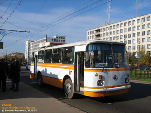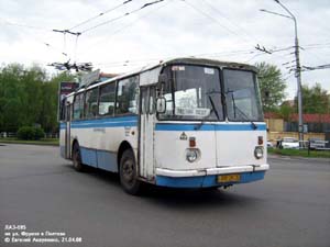 На ряду с комфортабельными автобусами Вольво на кольцевом маршруте работает и несколько автобусов ЛАЗ-695. |