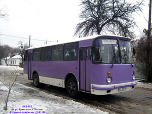 Пригородный ЛАЗ в необычной фиолетовой окраске. |