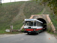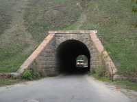 Перед вьездом в тоннель, которому больше 100 лет. Он связывает пос. Воронина (ул. Тоннельная) и Рогизну (ул. Правды). По верху проходит электрифицированная железная дорога. |