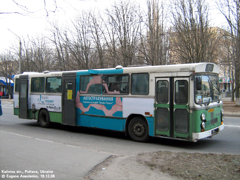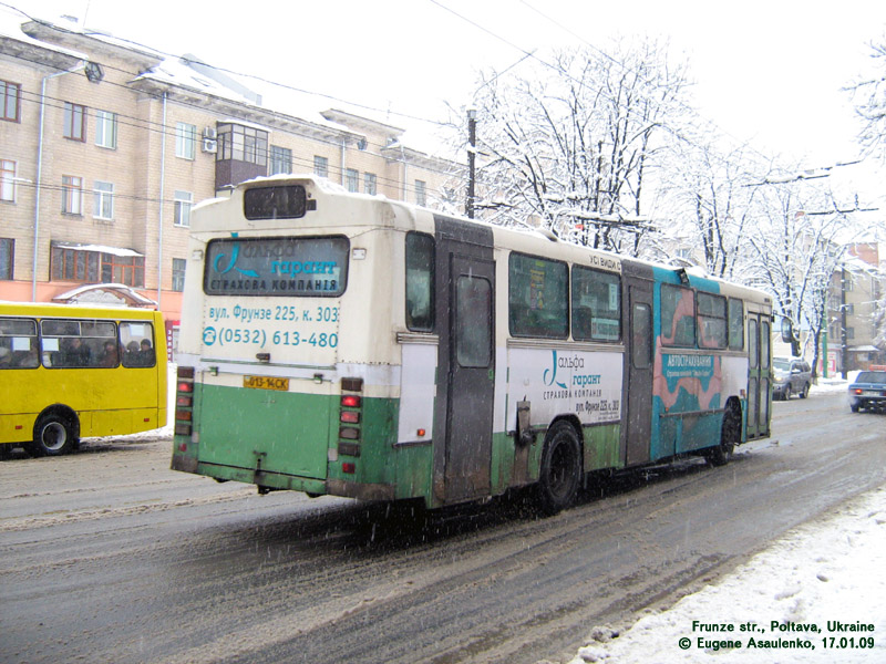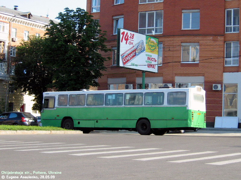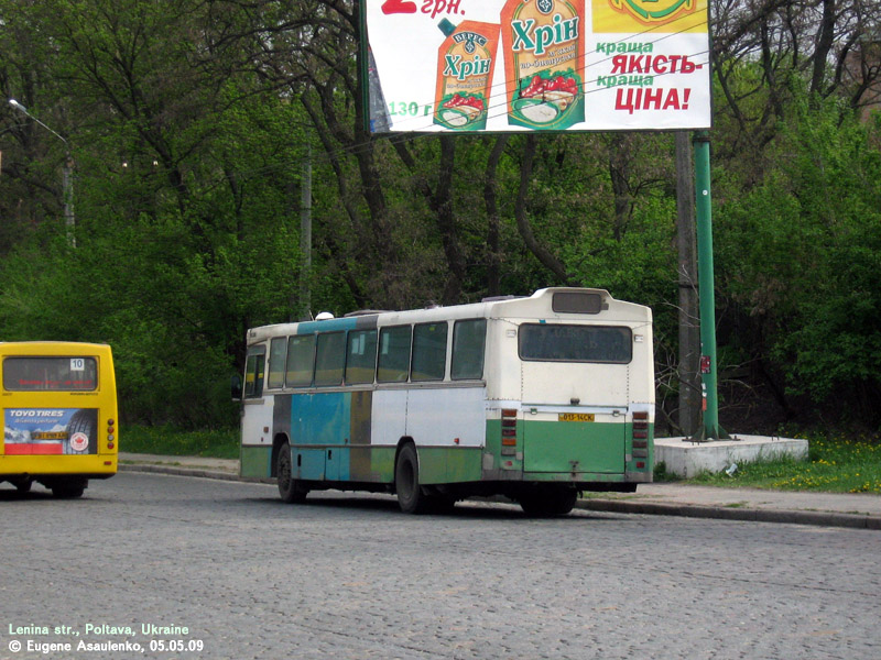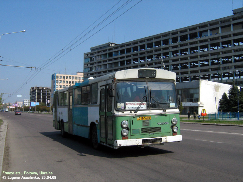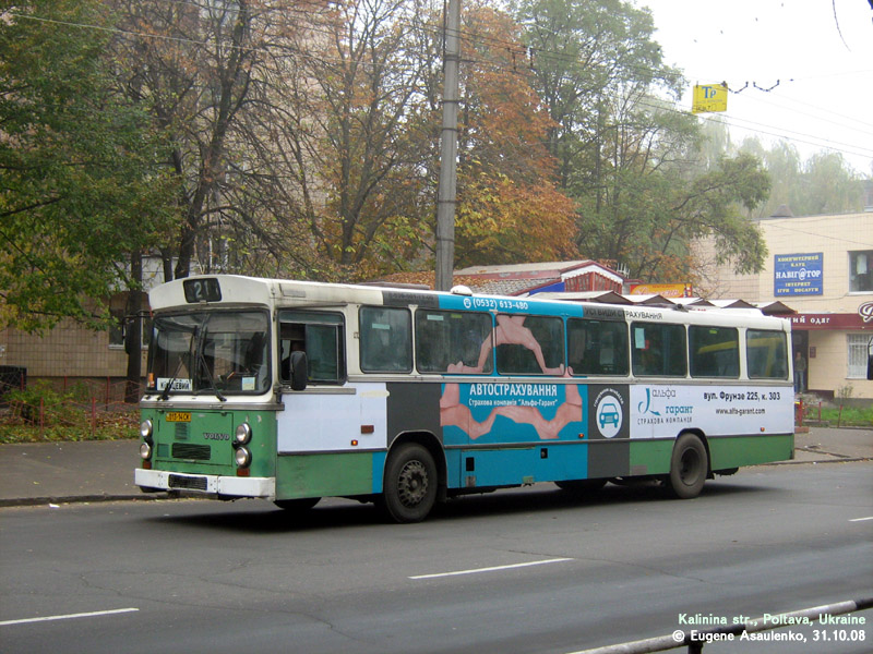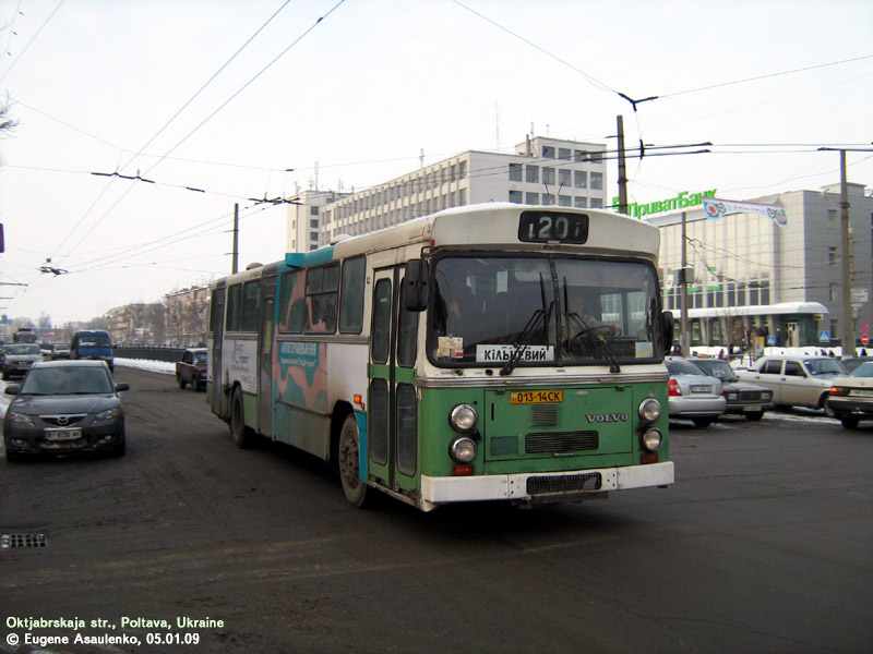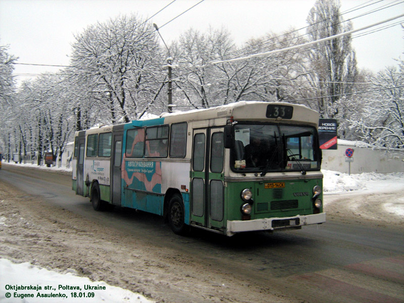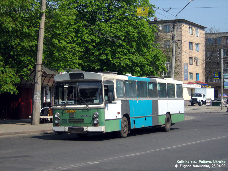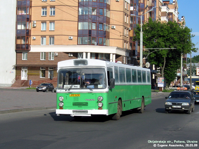 Теперь уже на маршруте №5 "Кр. Рынок - пос. Яковцы". Автобус не просто лишился рекламы и её фона, но и приобрел новую яркую окраску, тем самым став едва ли не первым автобусом Вольво, который лишился родной шведской окраски. |
