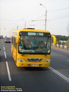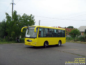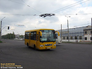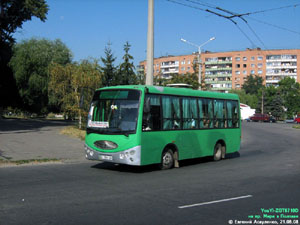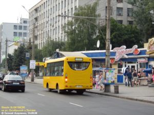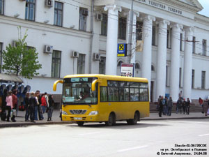На Супруновском путепроводе. Сейчас единственный в Полтаве Shaolin SLG6720CGE работает на Кольцевом маршруте. |