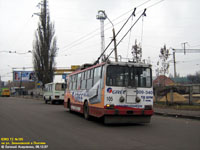 На ул. Зеньковской, перед ост. "ул. Опытная". С новой рекламой у тролейбуса измелся и цвет штанг, благодаря которым троллейбус заметен издалека. |