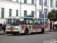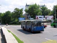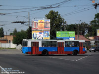 Площадь Зыгина. Неожиданно троллейбус получил стандартную для троллейбусов ЗиУ в Полтаве окраску - синий корпус с красной юбкой. Правда двери, как правило, были синие,а не красные. |