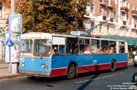 Следует из пос. Рассошенцы в сторону центра. В послений период работы троллейбусов ЗиУ в Полтаве таблички маршрута сзади, как правило, не вывешивались. |