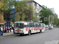 На ул. Великотырновской (микрорайон Сады-1) по маршруту №10. В те времена выпуск на этот маршрут составлял всего один троллейбус в первую смену и только по будним дням. |