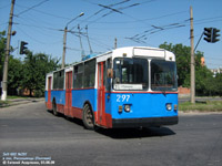 №297 пересекает перекрёсток улиц Октябрьской и Сенной. В кадре одно из трёх в городе тройных пересечений контактной сети. |