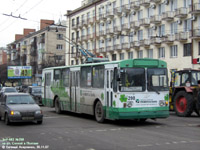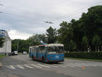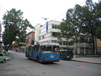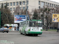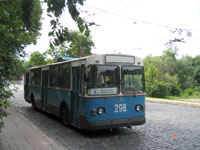 №298 по маршруту №1 движется по круглой площади. Слева по кадру - Малая академия искусств, которой в 2008 году она носит имя Р. А. Кириченко. |