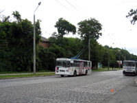 После среднего ремонта у троллейбуса появились "новые" двери. |