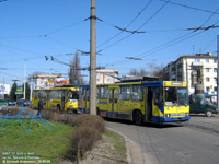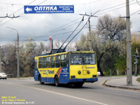 На ул. Мира. Троллейбус следует с Южного вокзала к ост. "Б. Хмельницкого". Осенью 2007 на троллейбусе ещё работали штангоуловители. |