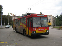 Проездив более трех лет в одной рекламе, №45 наконец-то перекрасили в новую. Внешний вид троллейбуса значительно улучшился. |