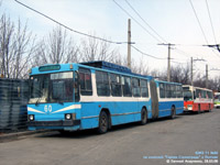 На конечной "Героевс Сталинграда" между первым и вторым "разрывом". Этот троллейбус, как и другие ЮМЗ Т1 в Полтаве работает только в часы пик. |
