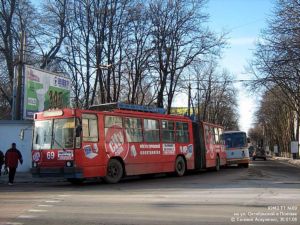 №69, как и другие полтавские "гармошки" работает "в разрыв". Поэтому в десять часов дня он уже следует в депо. |