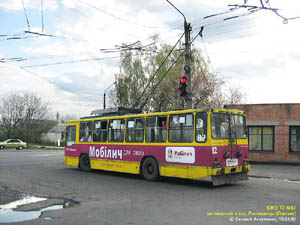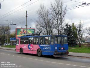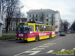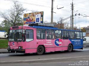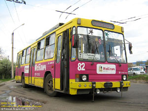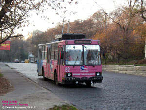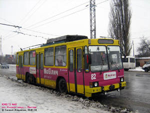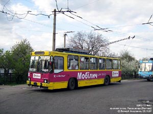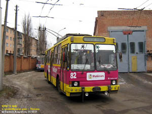 В троллейбусном депо. К новогодним празникам напись в маршрутоуказателе была заменена на новогоднее поздравление. |