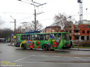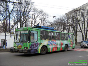 Позже троллейбус приобрёл рекламу ТМ "Ривьера". |