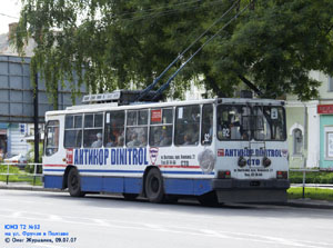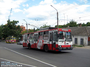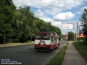 На ул. Ленина. Здесь самое интенсивное троллейбусное движение. Большинство маршрутов следует к Южному вокзалу. |