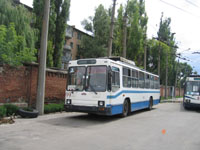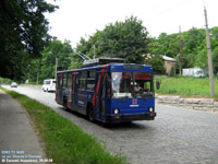 Такое скопление троллейбусов здесь бывает не так уж и часто. Из за аварии на ул. Зеньковской временно было остановлено движение тролейбусов маршрутов №7, 8, 12. На и возле конечной остановки "Институт связи" собралось восемь троллейбусов: пять из которых выстроились на остановке (пятый на момент съемки ещё не подъехал), ещё четыре - на развороте. Другие троллейбусы этих маршрутов позже стали оборачиваться на Киевском вокзале. |
