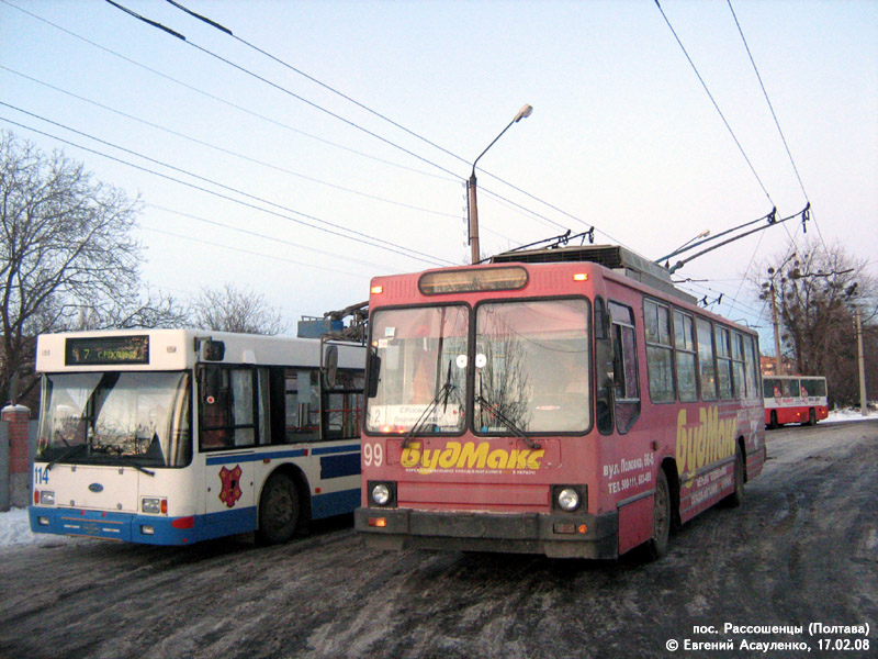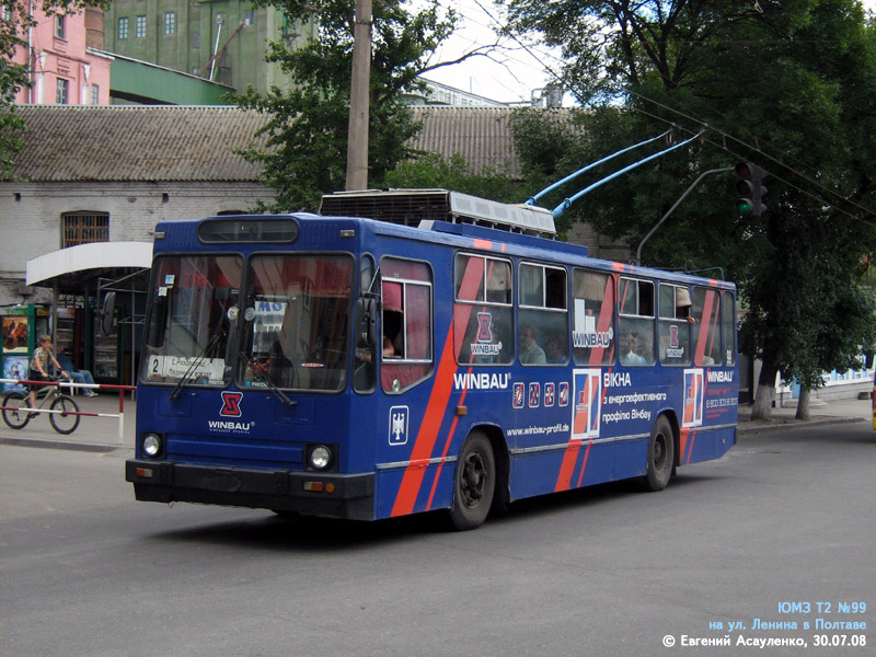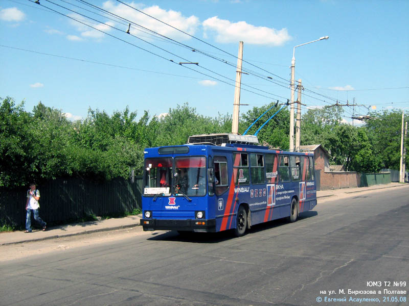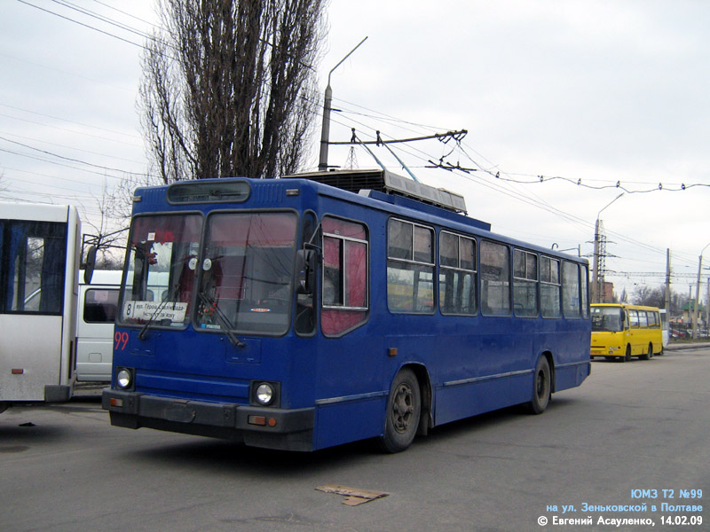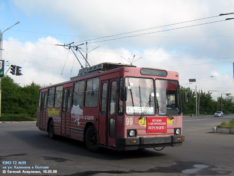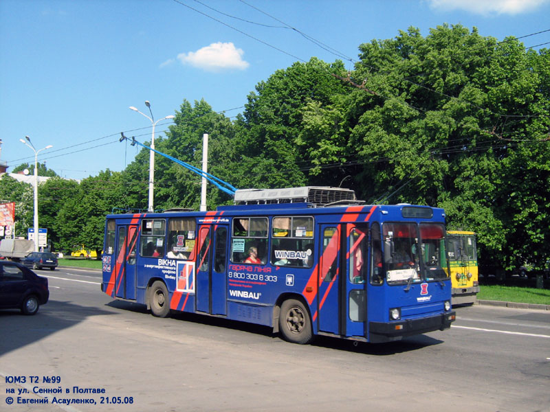Троллейбусы ЮМЗ Т2 №99 и №89 на ул. Октябрьской. Автор фото к сожалению неизвестен. Фото найдено в локальной сети г. Полтавы. В случае установления авторства фото будет подписано его именем. |