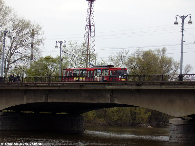 На мосту через реку Ворсклу. Троллейбус следует на Южный вокзал. |
